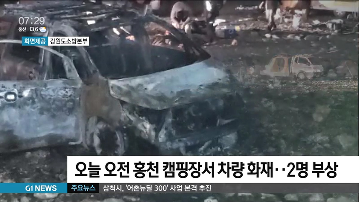 오늘 오전 홍천 캠핑장서 차량 화재..2명 부상