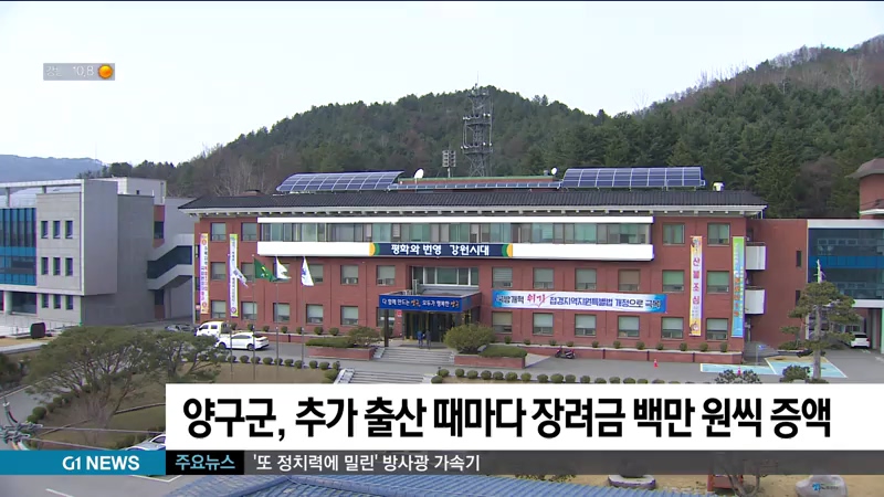 양구군, 추가 출산때마다 장려금 백만원씩 증액