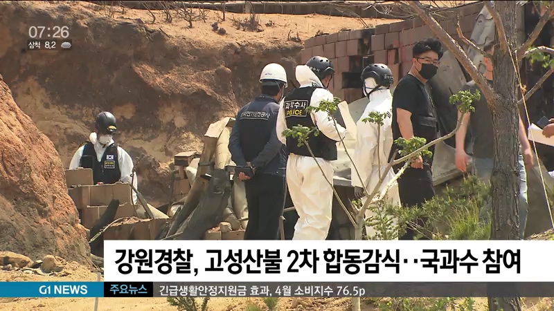 지난 1일 발생한 고성산불의 발화 원인을 규명하기 위한 경찰의 2차 합동 감식이 어제(7일) 실시됐습니다.