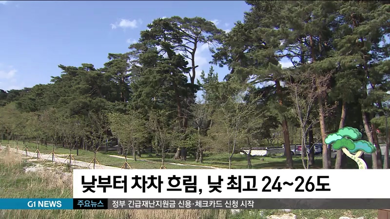 낮 최고기온은 영서지역이 18도에서 24도, 영동지역은 24도에서 26도의 분포로 어제보다 오르겠습니다.