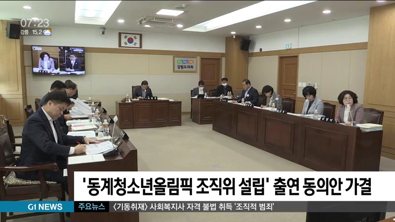 강원도의회 사회문화위원회는 제291회 강원도의회 임시회에서 강원도가 제출한 '2024 동계청소년올림픽 대회 조직위원회 출연 동의안'을 표결 끝에 찬성 6표, 반대 2표, 기권 1표로 가결했습니다.