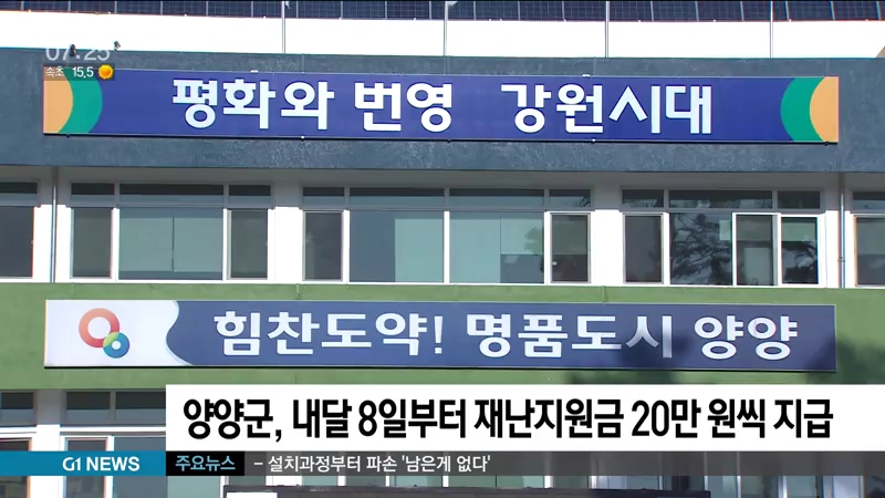 양양군, 내달 8일부터 재난지원금 20만원씩 지급