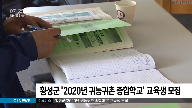 횡성군은 다음주부터 다음 달 5일까지 '2020년 귀농·귀촌 종합학교' 교육생을 모집합니다.