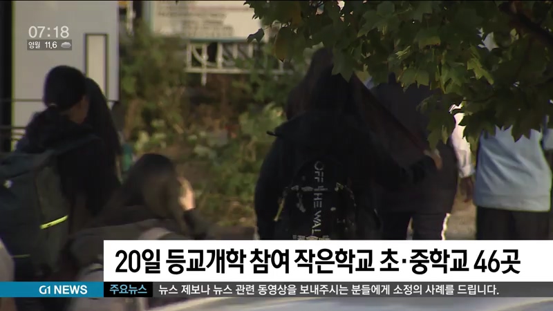 20일 등교개학 참여 작은학교 초·중학교 46곳