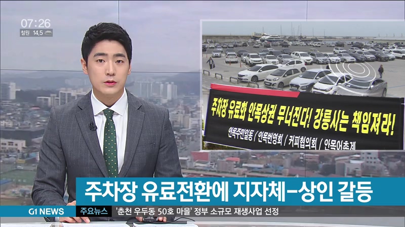 "이곳 커피거리는 그동안 주차장 요금을 받지 않았는데 강릉시가 오는 7월부터 주차장 요금을 받겠다고 밝히면서 인근 상인들과 갈등이 시작됐습니다."