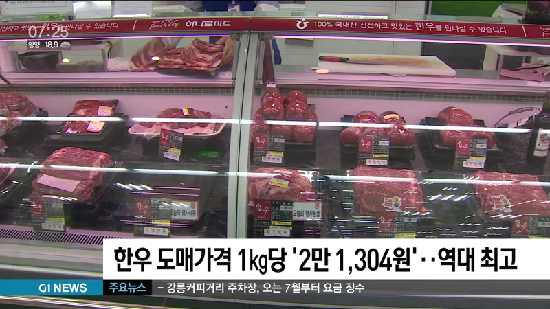 축산물품질평가원에 따르면, 한우 지육의 kg당 도매 가격은 2만 1,304원으로, 관련 조사가 시작된 1995년 이후 최고가를 기록했습니다.