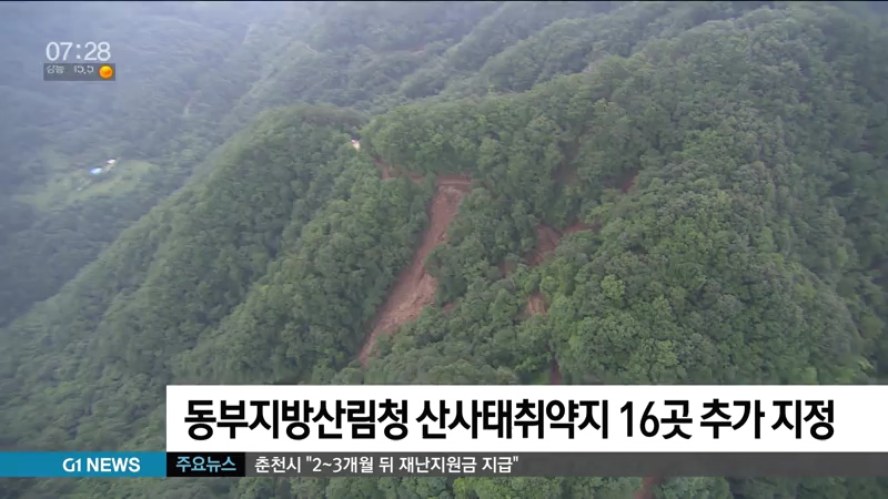 동부지방산림청이 산사태취약지역 10.4ha 16곳을 추가 지정했습니다.