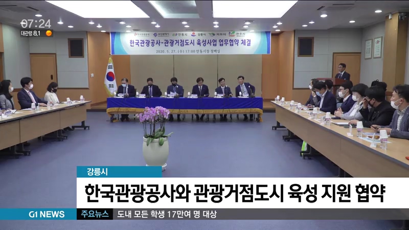 강릉시가 한국관광공사와 관광거점도시 육성 지원 업무협약을 체결하고 본격적인 도시 관광 브랜드 구축에 나섭니다.
