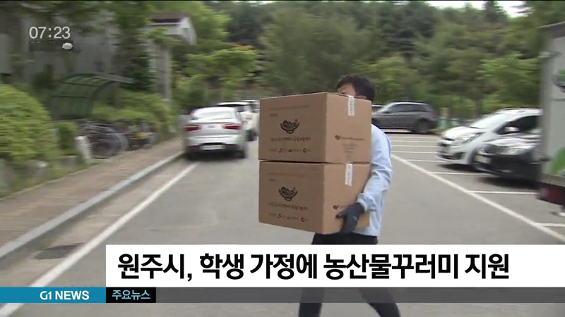 원주시는 지역 초.중.고교와 특수학교, 그리고 유치원생 가정에 학생 1인당 5만 5천 원 상당의 농산물꾸러미를 전달합니다.