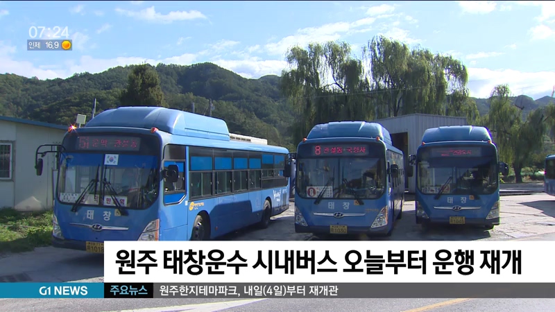 코로나19 확산에 따른 운영난으로 지난 4월 휴업에 들어갔던 원주 시내버스 업체 태창운수가 오늘부터 운행을 재개합니다.