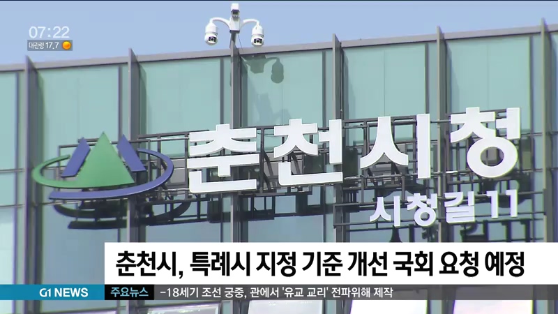 춘천시는 국가 균형발전과 지방 중소도시 자립성 확보를 위해 강원도 수부도시인 춘천이 특례시로 지정될 수 있도록 인구수 중심의 기준안을 개선해야 한다고 국회에 요청할 계획이라고 밝혔습니다.