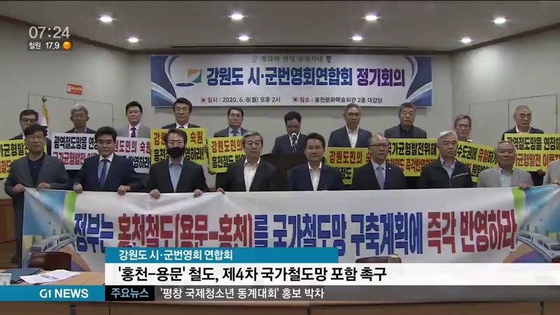 강원도 시·군 번영회연합회는 홍천문화예술회관에서 회의를 열고, 홍천지역 30년 숙원 사업인 '홍천-용문 철도'를 제4차 국가철도망구축계획에 포함해 달라고 요구했습니다.