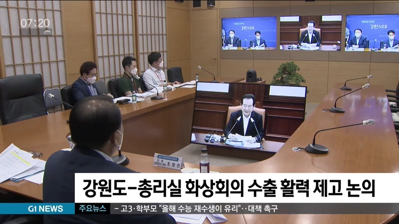 강원도는 어제(10일) 화상회의실에서 정세균 국무총리가 주재하는 '제2차 확대무역전략조정회의'에 참여해, 지역별 수출활력 제고방안 등을 논의했습니다.