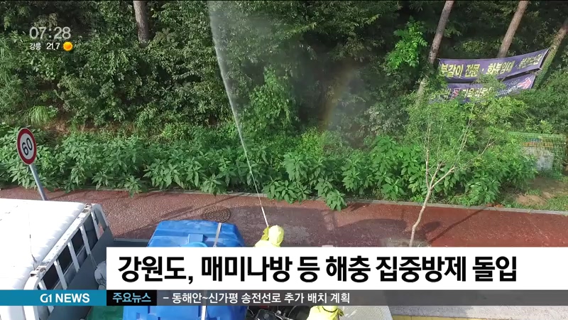 강원도는 현재 춘천과 원주, 횡성 등 12개 시군 720여 헥타르에 방제를 마쳤고, 시군별 산림 병해충 방제단 70여 명을 투입해, 지상 방제를 이어나간다는 방침입니다.