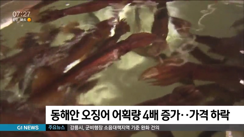 동해안 오징어 어획량 4배 증가..가격 하락