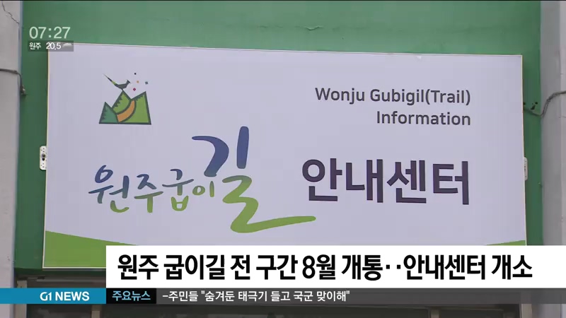 원주시는 명품 도보여행길로 조성 중인 원주 굽이길 30개 코스, 400km 전 구간이 오는 8월 개통함에 따라, 종합안내센터를 개소했습니다.