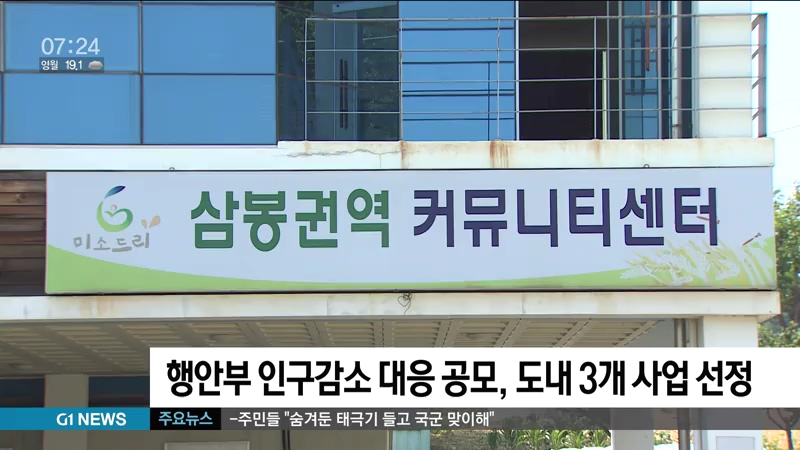 행안부 인구감소 대응 공모, 도내 3개 사업 선정