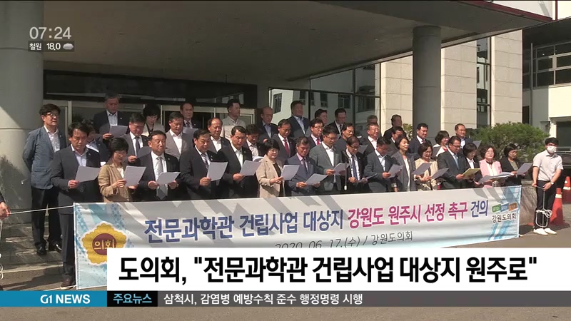 강원도의회는 '전문과학관 건립사업' 대상지로 원주를 선정해 줄 것을 정부에 건의했습니다.