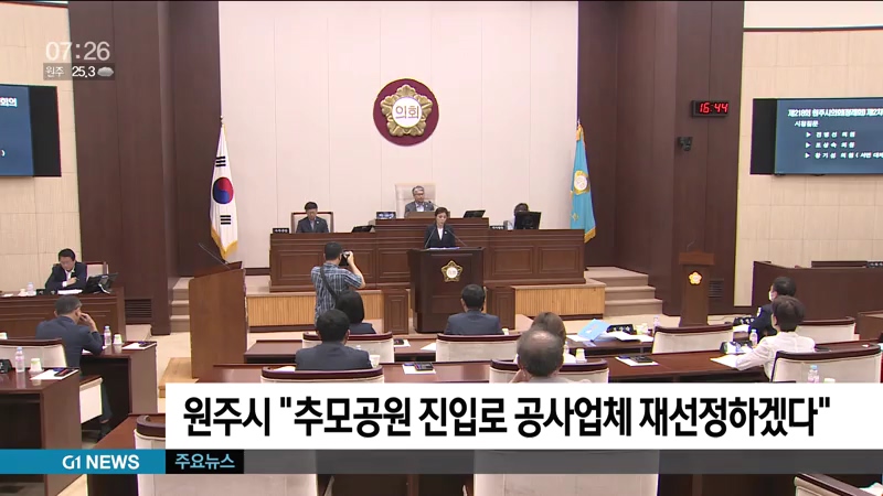 원주시가 추모공원 진입도로 예산을 확보하고도 공사 업체와의 소송 때문에 공사를 못하고 있다는 G1뉴스 보도와 관련해, 원주시가 새 업체를 선정해 공사를 시작하겠다고 밝혔습니다.
