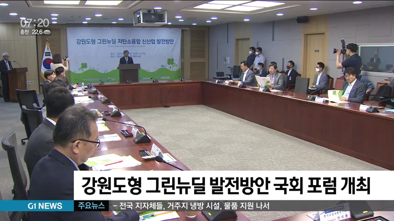 강원도국회의원협의회와 강원도는 어제, 국회 의원회관에서 최문순 지사와 권성동 국회의원 등이 참석한 가운데, '강원도형 그린뉴딜, 저탄소융합 신산업 발전방안'을 논의하는 포럼을 개최했습니다.