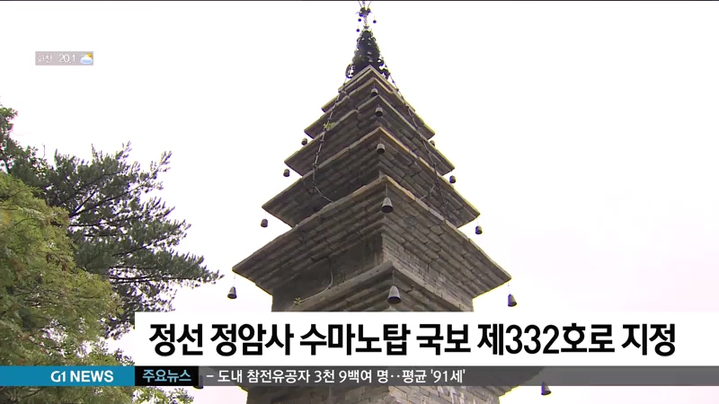문화재청이 보물 제410호인 정선 정암사 수마노탑을 국보 제332호로 지정 고시했습니다.