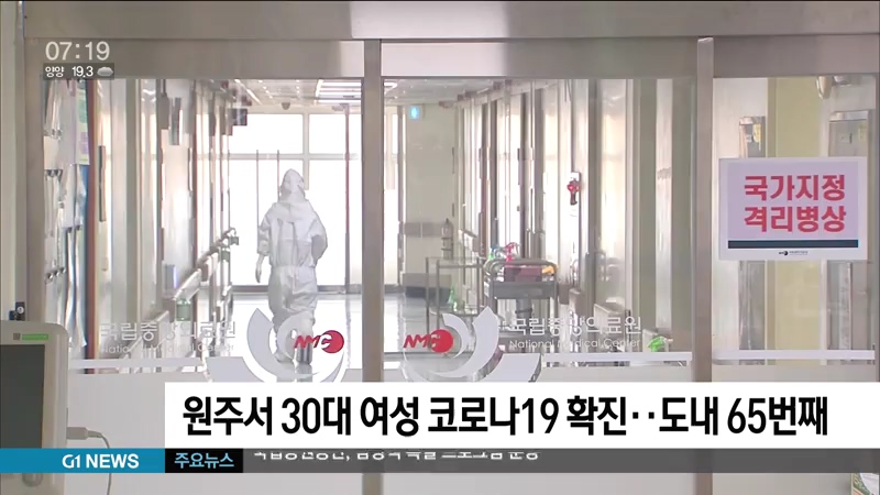 원주에서 코로나19 확진자가 또 한 명 추가 돼, 도내 확진자는 모두 65명으로 늘었습니다.