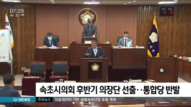 하지만 미래통합당 강정호, 김명길 의원은 의사발언을 통해 "의회 협의없이 민주당 속초지역위원회가 내정한 인사가 부의장에 확정됐다"면서 표결을 거부하고 본회의에서 퇴장했습니다.