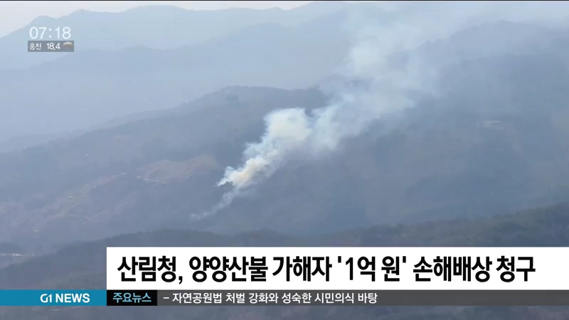 산림청 양양국유림관리소는 지난 3월 양양군 현남면 상월천리 국유림에서 불을 낸 산불 가해자에게 손해배상을 청구하기로 했습니다.