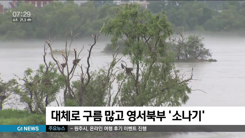 강원도는 오늘 대체로 구름 많은 가운데, 철원과 화천 등 영서북부 지역에는 소나기가 오는 곳이 있겠습니다.