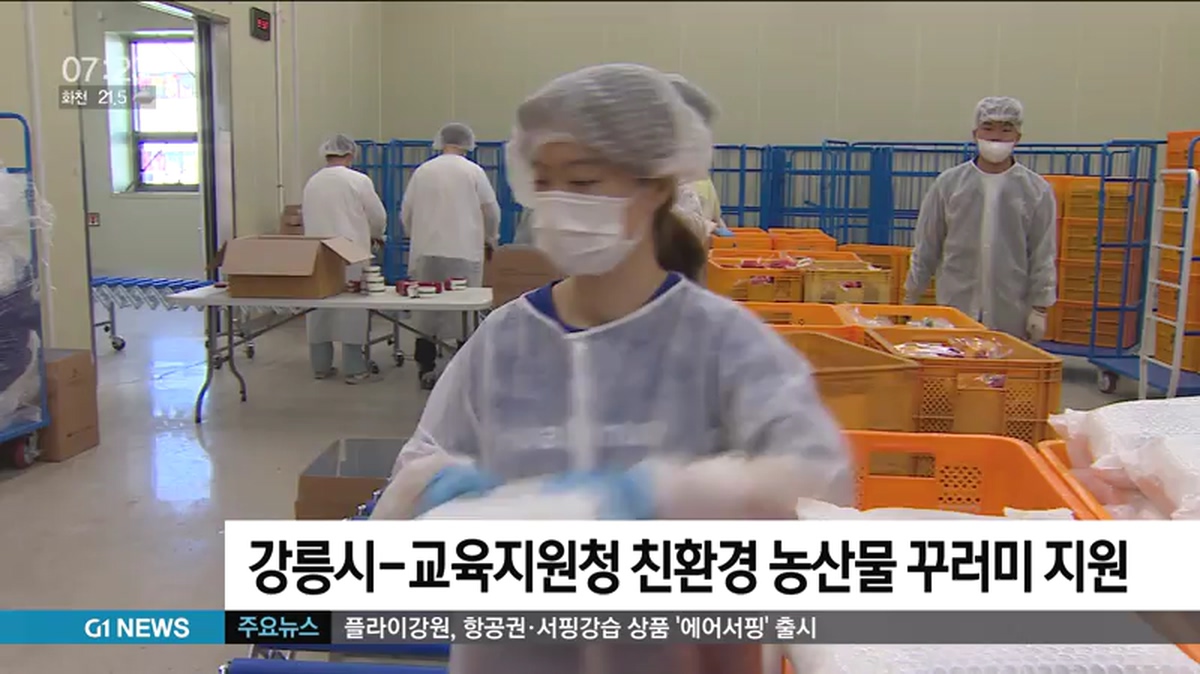 꾸러미는 강릉 지역 농민이 생산한 찹쌀과 감자, 양파 등 제철 친환경 농산물로, 59개 초·중·고교 학생 2만여명의 가정에 오늘(7일)부터 차례차례 배송합니다.