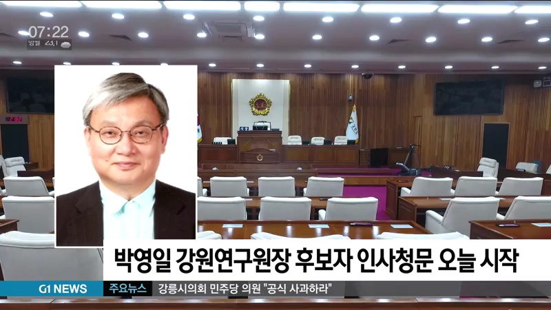 강원도의회가 제12대 강원연구원장으로 내정된 박영일 후보자에 대한 인사청문회를 오늘 진행합니다.