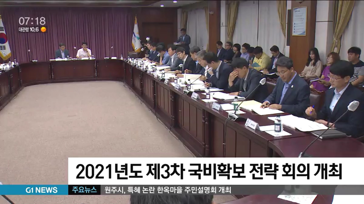 2021년도 제3차 국비확보 전략 회의가 최문순 지사를 비롯한 도 실국장단과 대외협력관 등이 참석한 가운데 도청 소회의실에서 열렸습니다.