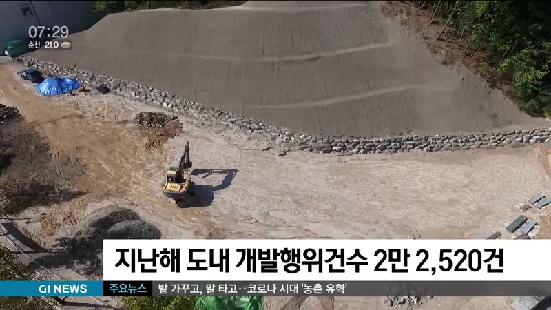 국토교통부와 LH 자료에 따르면, 지난해 강원지역에서 허가된 개발행위는 2만 2,520건으로 전국 17개 시도 가운데 경기와 전남, 경북에 이어 전국에서 네번째로 많았습니다.