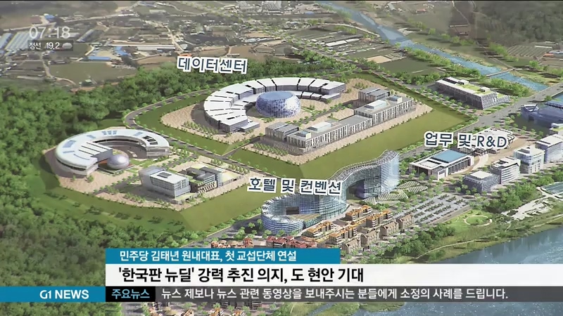 더불어민주당 김태년 원내대표가 취임 후 첫 교섭단체 대표 연설에서 '한국판 뉴딜' 정책 추진 의지를 재확인해, 강원도 현안 사업 추진에 대한 기대감이 높아지고 있습니다.