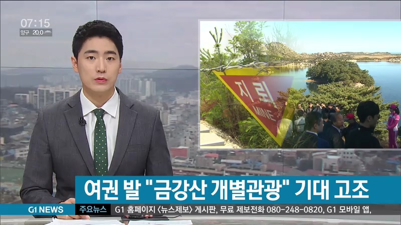 "정치권의 금강산 개별 관광 논의가 멈춰선 남북협력의 시계 바늘을 다시 돌릴 수 있을지 기대감이 커지고 있습니다. G1뉴스 원석진입니다."