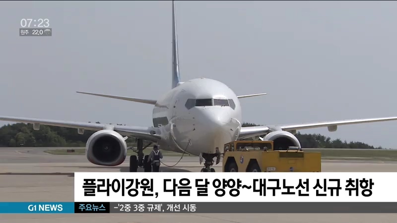 플라이강원은 양양~대구 노선에 186석 규모의 항공기를 투입하고, '금·토·일' 왕복 주 3회씩 운항합니다.