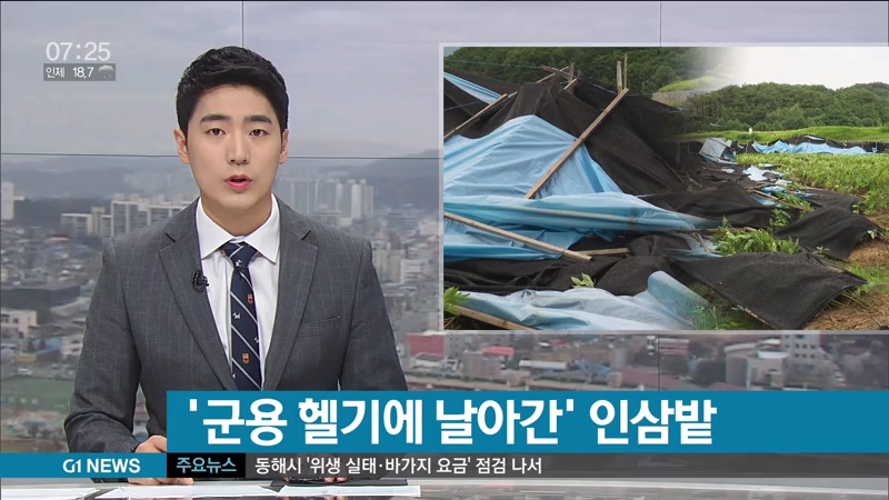 헬기가 착륙하다가 인삼밭 위를 낮게 지나가 프로펠러 바람에 시설이 날아간 겁니다.