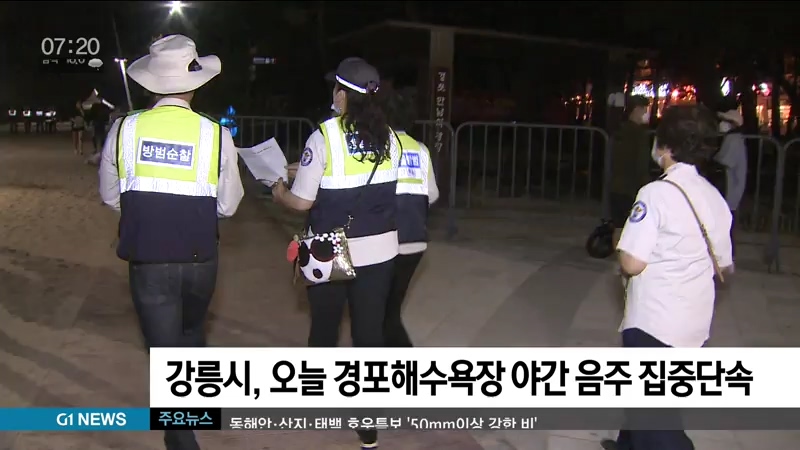 강릉시는 오늘 저녁 8시부터 경찰과 단속요원, 자율방법대 등 50여명이 경포해수욕장에서 술을 먹거나 음식을 먹는 행위에 대해 백사장과 출입구에서 집중 단속을 벌일 계획이라고 밝혔습니다.