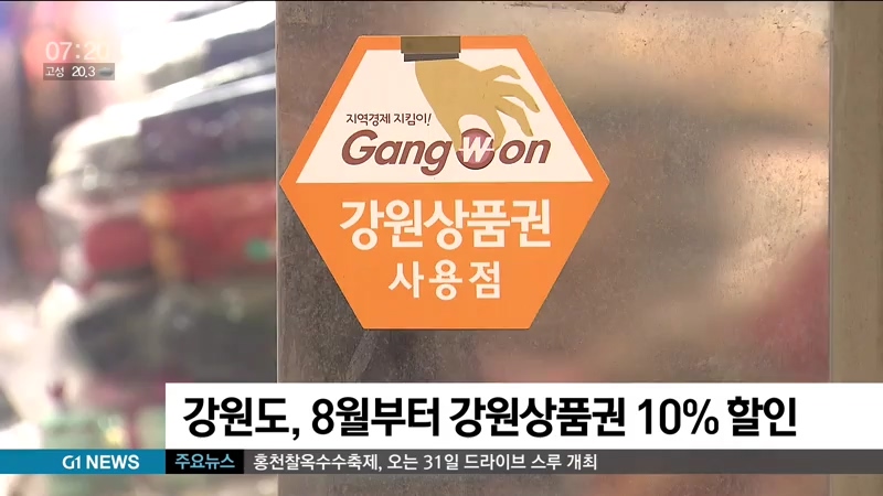 강원도, 8월부터 강원상품권 10% 할인