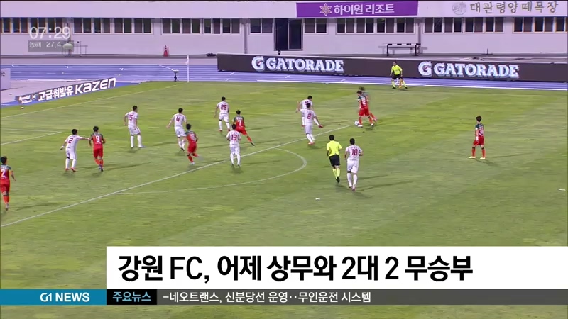 강원 FC, 어제 상무와 2대 2 무승부