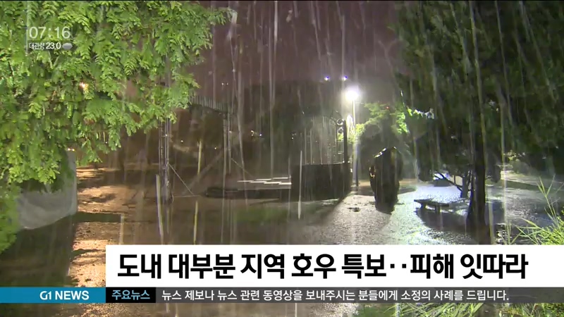 현재 동해안 일부 지역을 제외한 도 전역에 호우 특보가 내려진 가운데,
