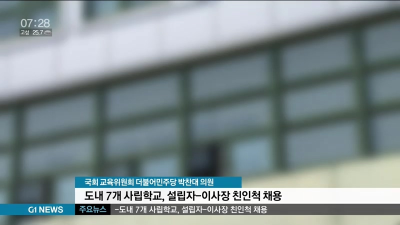도내 사립학교 설립자나 이사장, 임원 등과 친인척 관계인 행정 직원이 있는 학교는 모두 7곳으로 7명이 재직 중인 것으로 드러났습니다.