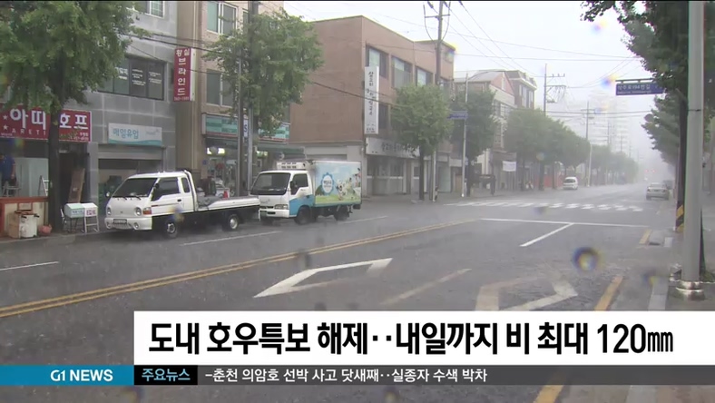 도내 호우특보 해제..내일까지 비 최대 120㎜
