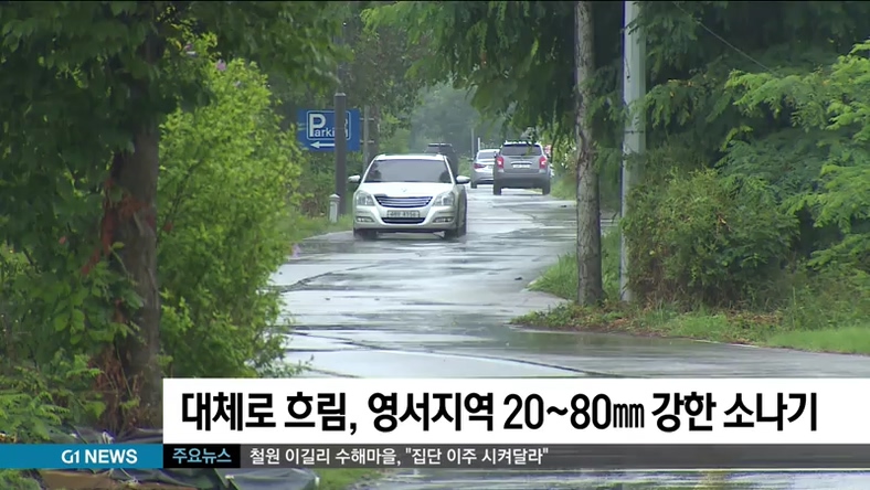 대체로 흐림, 영서지역 20~80mm 강한 소나기