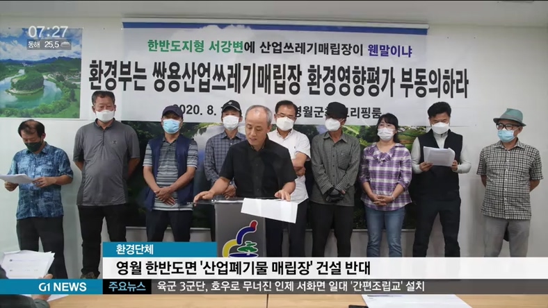 강원도환경운동연합 등 환경단체들은 어제(12일) 영월군청에서 기자회견을 열고 쌍용양회가 영월군 한반도면에 추진하는 '사업장 일반폐기물 매립시설' 조성에 반대했습니다.
