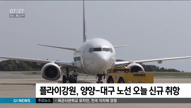 강원도는 오늘(14일) 오전 7시 40분, 플라이강원 양양-대구 노선이 첫 운항을 시작한다고 밝혔습니다.