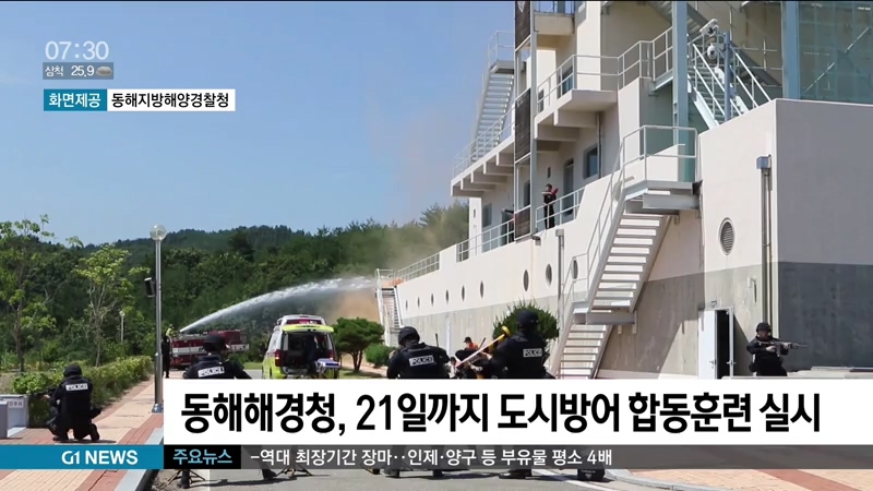 동해지방해양경찰청은 테러대응능력 향상과 협력체계 구축을 위한 도시방어 합동 훈련을 21일까지 진행합니다.