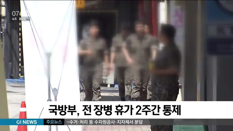 국방부는 코로나19 재확산세가 이어짐에따라, 앞으로 2주간 장병들의 휴가를 통제합니다.