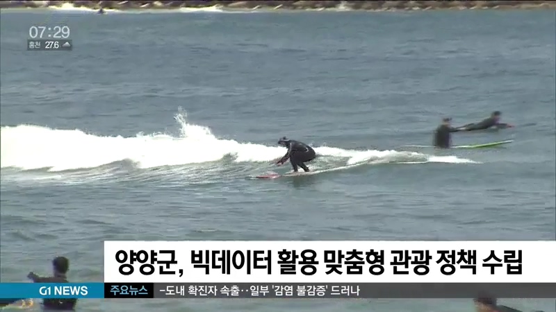 양양군은 이동통신사를 통해 지역 서핑 명소와 낙산사, 전통시장 등 11개 주요 관광지의 최근 3년 간 방문객과 먹거리, 숙박 현황 분석을 완료해 정책을 마련하고 있다고 밝혔습니다.