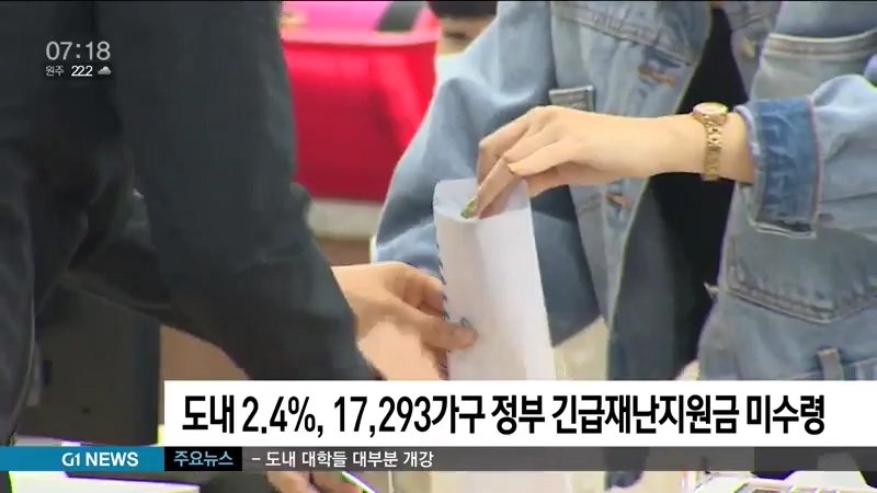 지난 5월, 정부가 전 국민에게 지급한 긴급재난지원금을 받지 않은 도내 가구가 2.4%에 이르는 것으로 나타났습니다.